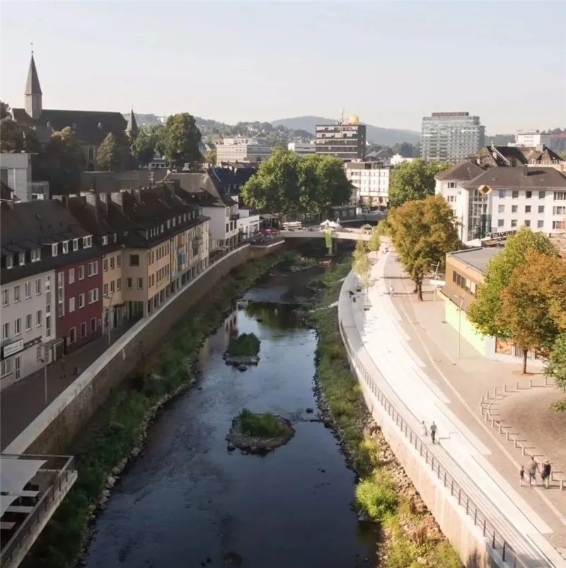 隨著河流的復(fù)興,180米長的新“Siegtreppen”,重新設(shè)計進一步的廣場,長廊和橋梁在附近的勝利贏得了Siegen它的城市中心在河背上。 清晰可讀和慷慨的自由空間結(jié)合了居民對城市生活和“綠色”娛樂的多方面要求,與水元素直接接觸。