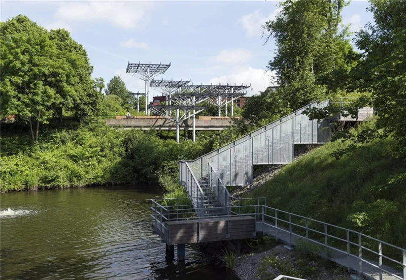 該公園變革性的影響在于其生態(tài)可持續(xù)性所激發(fā)的社會可持續(xù)性與社會公正。沿河岸而建的數(shù)條步道將周邊的社區(qū)與這片活力四射的景觀串聯(lián)為一體,這也是近百年來首次將河流的邊緣向群眾開放。