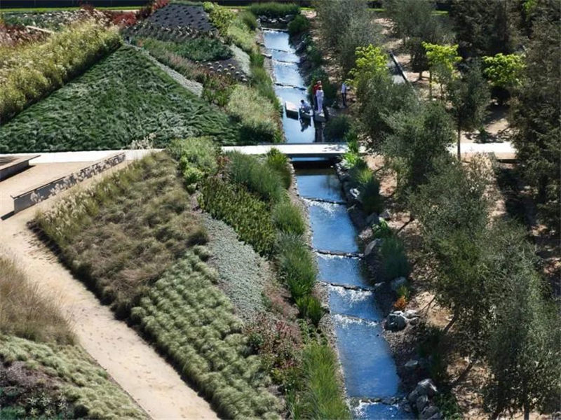 成列的新河道蜿蜒曲折、寬度各不相同,建造出各種流動形式,成為自然河流系統(tǒng)中的特色景觀,建造出有價值、自然和多樣的棲息地,營造生物多樣性。泛濫平原的設(shè)計也在新加坡引入了一個新型公共空間——3座新橋、梯田狀的濱河走廊、濱河臺地、橫跨河流的墊腳石以及凈水供養(yǎng)的水廣場都會拉近人們與河流的距離。其親近水和體驗其所有自然韻律與美麗的能力轉(zhuǎn)變了人們保護環(huán)境的責(zé)任感。